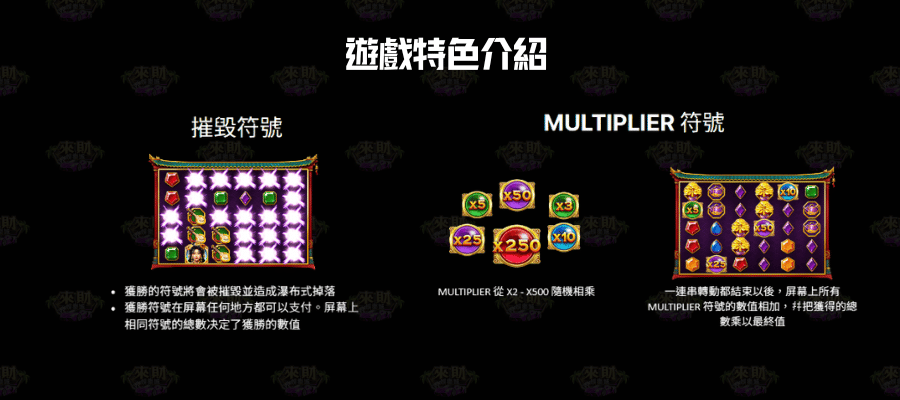 真正讓獎金變得有感的,是盤面中隨機出現的 MULTIPLIER 倍率符號。這些倍率不是直接給獎,而是負責「放大結果」:
